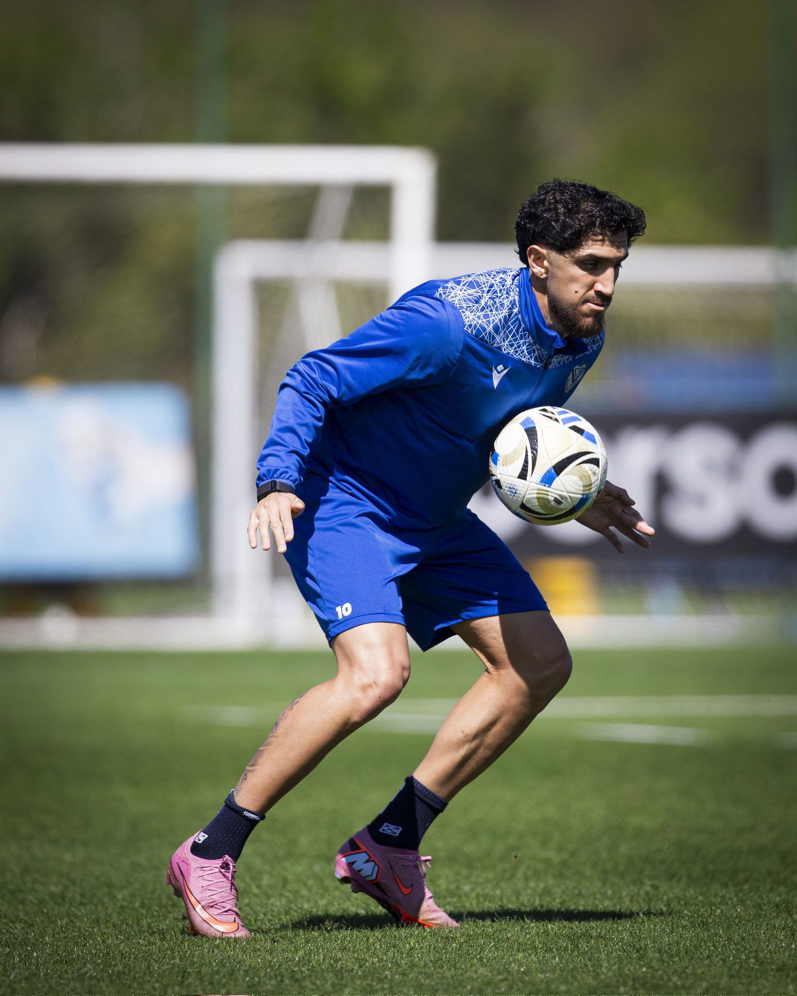 Todo comenzó a las 10, cuando los futbolistas saltaron al terreno de juego a realizar la activación junto a los profes Pablo Matamalas y Marcelo Montero. Se trabajó la coordinación con y sin balón en velocidad, para luego pasar a entrenar con GBS.