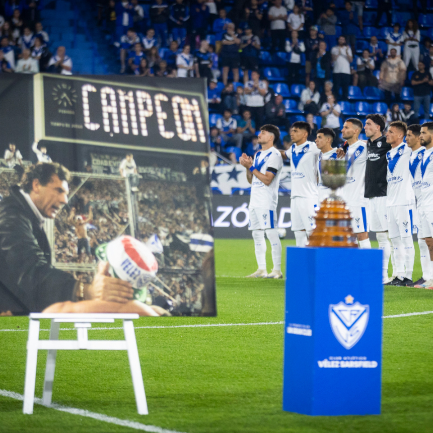 El preludio de la noche tuvo que ver con el homenaje a la memoria del querido Miguel Ángel Russo. Los trofeos de campeón que obtuvo con Vélez en 2005 y con el Canalla en 2023 estuvieron en el campo de juego, acompañados por una imagen de Miguel dando la vuelta olímpica en andas hace 20 años. El respetuoso minuto de silencio se rompió con un estruendoso aplauso de los hinchas velezanos.