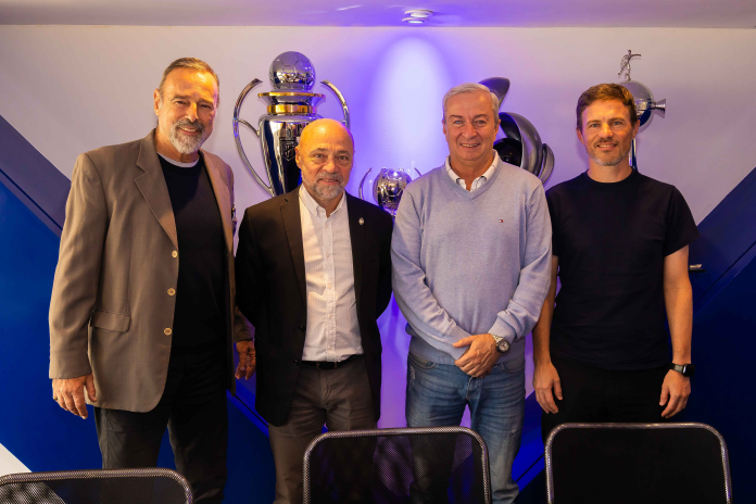 El flamante entrenador llegó acompañado por los ayudantes Leandro "Chavo" Desábato y Walter Lemma; y por el Preparador Físico Hugo Roldán, asistido por el Profe Ivo Paciello.
