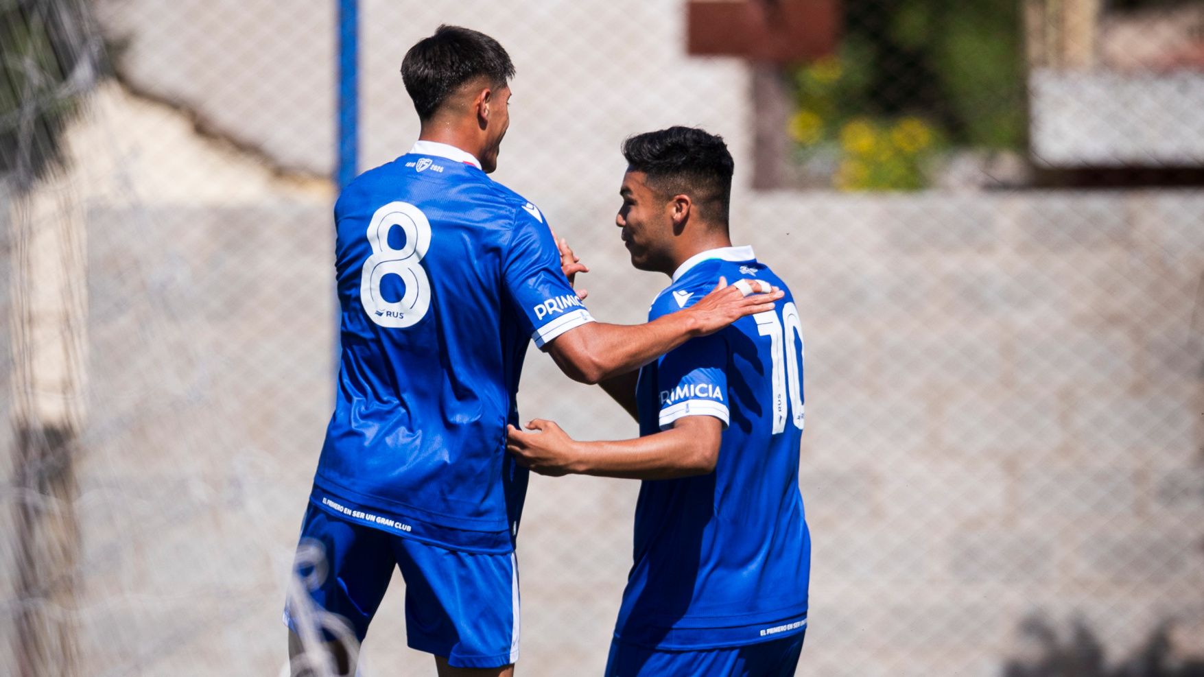 Nacho Gómez abraza a Raúl Cabral tras el 1-0. (Foto: Hernán Mauricio)